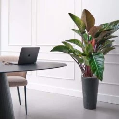 Deze Anthurium Clarinervium, een zeer exclusieve kamerplant, heeft een mooie bladtekening en veloursachtig blad. Het hartvormige blad geeft de plant een chique uitstraling.