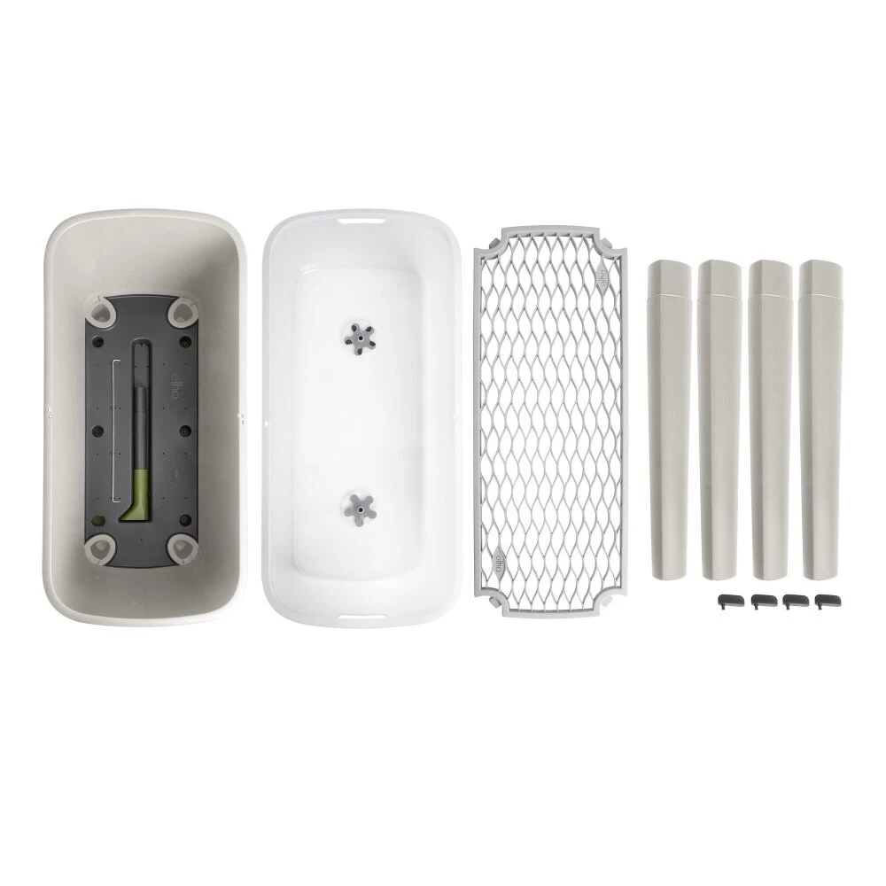 Met de noa kweektafel kweek je eenvoudig je eigen groenten, fruit en kruiden. De kweektafel heeft een geintergreerd watersysteem inclusief een watermeter. Daarnaast komt deze kweektafel ook met een bijpassend kweekhuis en onder de tafel bevindt zich een handige tray. Deze kweektafel is gemaakt van 100% gerecycled plastic, geproduceerd met windenergie en ook nog eens 100% recyclebaar. Daarnaast ook vorstbestendig en verkleurt niet.Alles bij de hand Op ideale werkhoogte kweek je eenvoudig groenten, fruit en kruiden. Of het nu tomatenplanten zijn, sla of basilicum, deze kweektafel op poten is groot genoeg om meerdere planten in te kweken. Onder de tafel, tussen de poten, bevindt zich een handige tray om altijd de juiste kweekaccessoires bij de hand te hebben. Met behulp van de afneembare poten berg je de kweektafel, als het kweekseizoen voorbij is, eenvoudig weer op.Inclusief kweekhuis Het kweekhuis zorgt ervoor dat jouw zaden en plantjes beschermd worden tegen vogels, regen en direct zonlicht. De ventilatie schijfjes creëren een optimaal klimaat en zorgen ervoor dat jouw plantjes onder goede temperatuur en luchttoevoer kunnen groeien. Nooit te natte voetenDe noa kweektafel heeft een eenvoudig watersysteem met een reservoir. De watermeter geeft precies aan wanneer je het water bij moet vullen. Met behulp van de afsluitdop kun je af en toe overmatig water laten weglopen, zodat de wortels van jouw planten gezond blijven. Al deze handige functies komen samen in de mooie en praktische noa kweektafel.